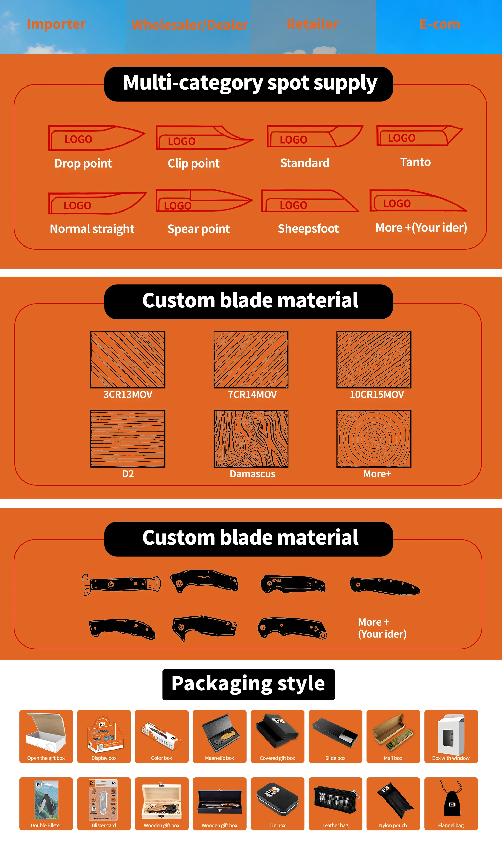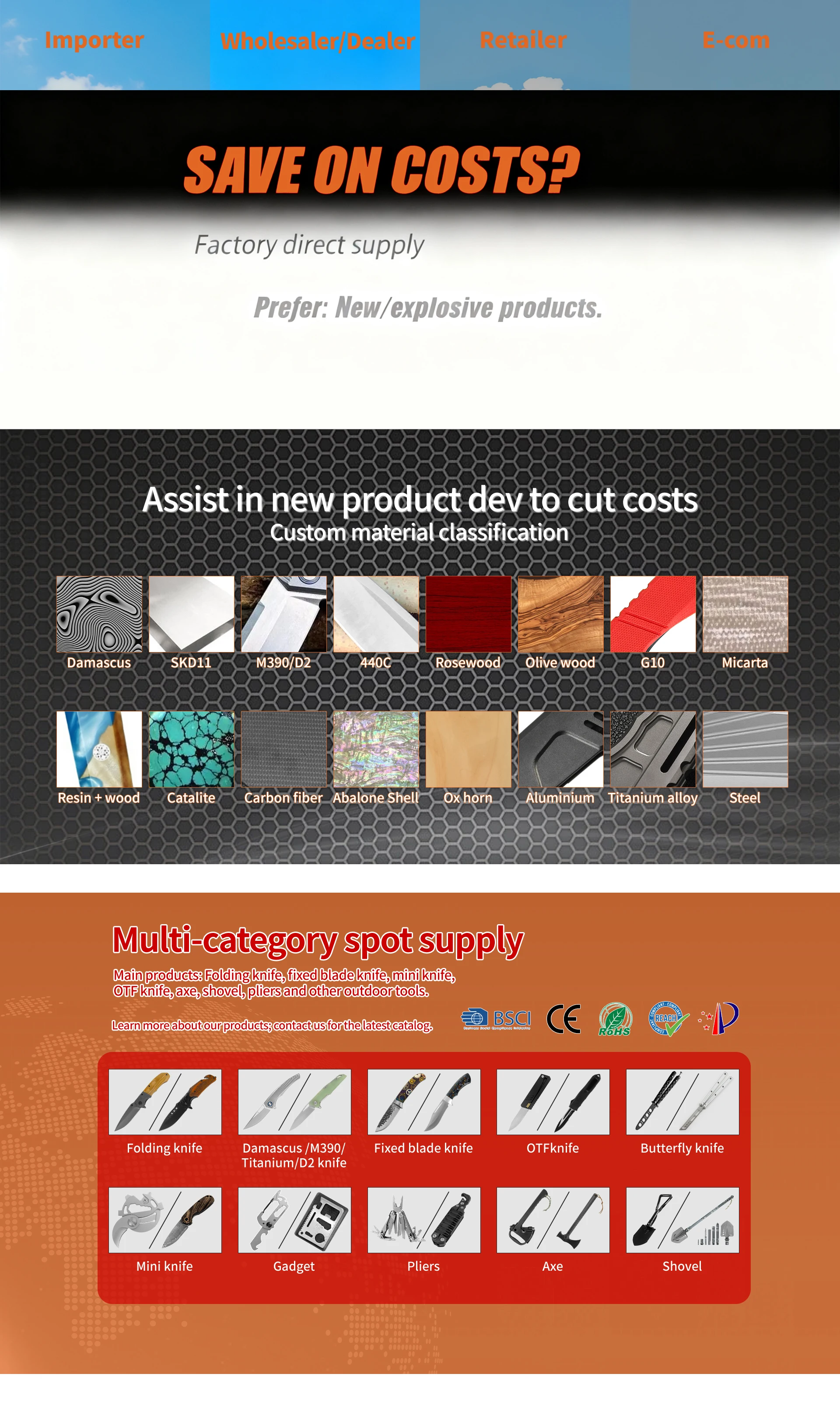 Ana ürünler:Çakı/av bıçağı/çoklu alet/kürek, bahçe aracı